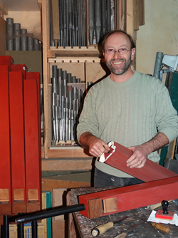 Par une approche totalement autodidacte, formé aux l'écoles de l'observation, de la recherche technique et documentaire, des expériences multiples, des rencontres, des stages (tuyautier)..., son expérience en facture instrumentale s'est ainsi construite.